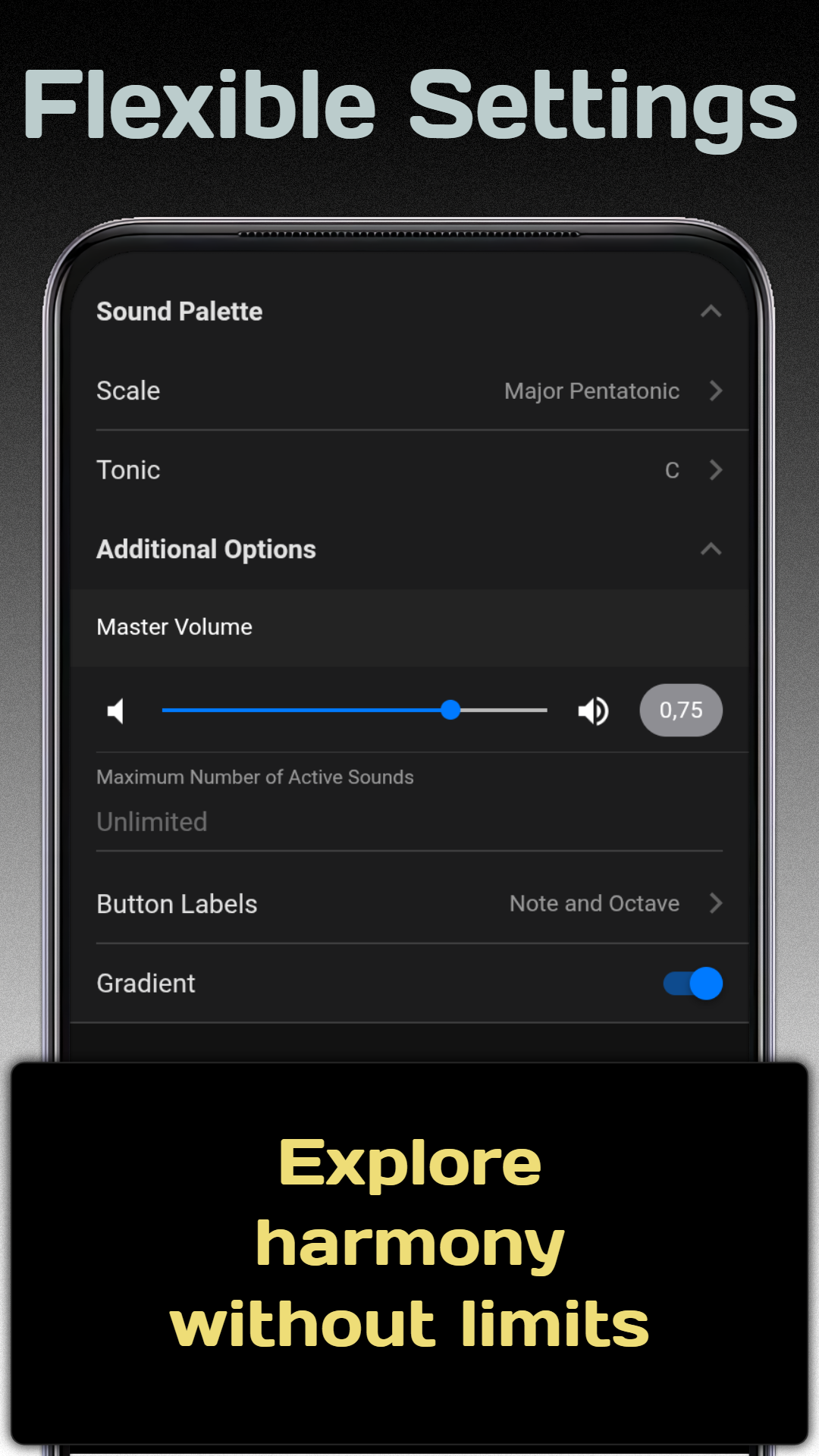 Handpan Multi-Scale allows you to explore different scales easily, helping you find new melodies and moods without switching instruments.