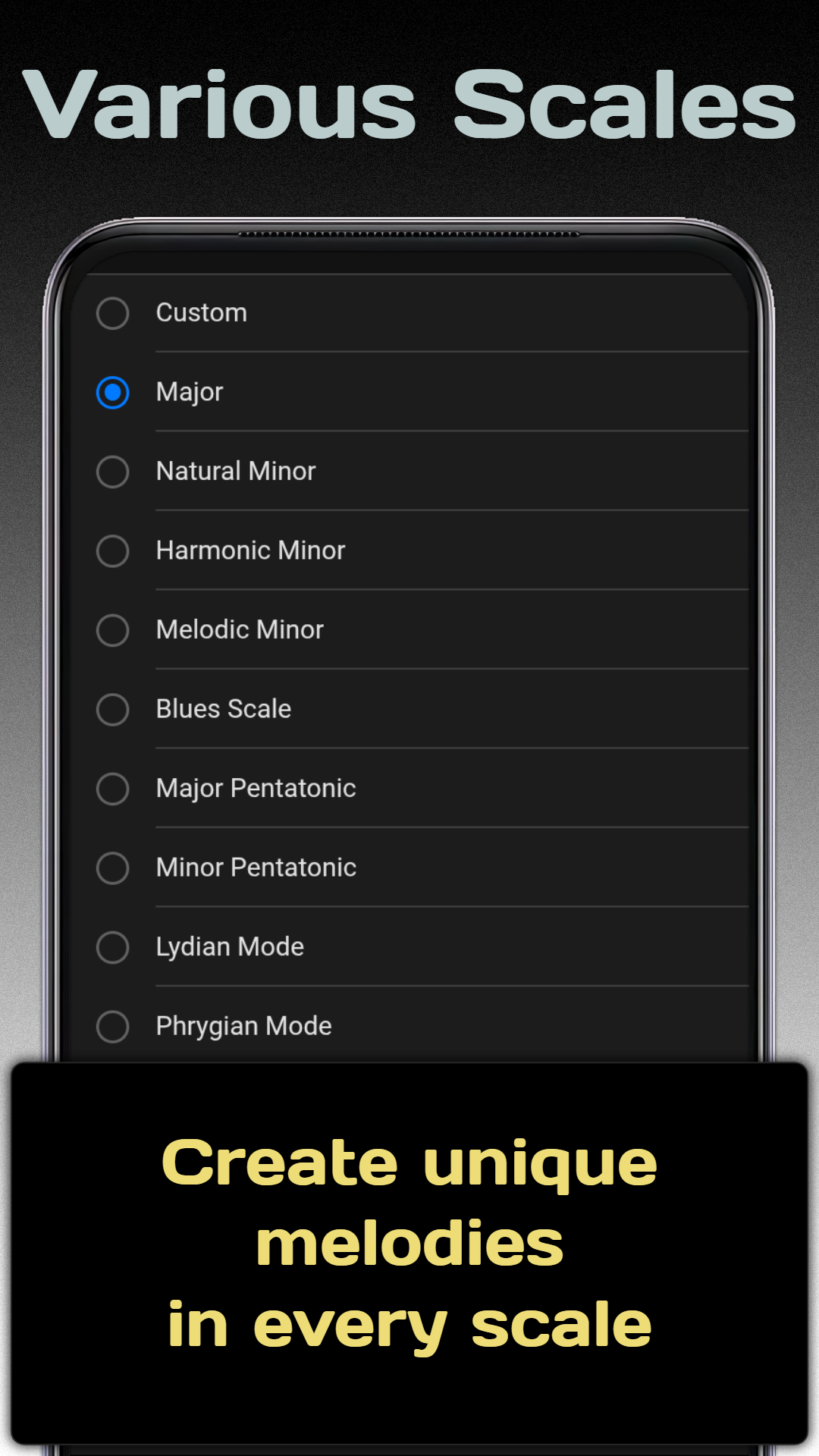 - Multiple musical scales in one instrument.